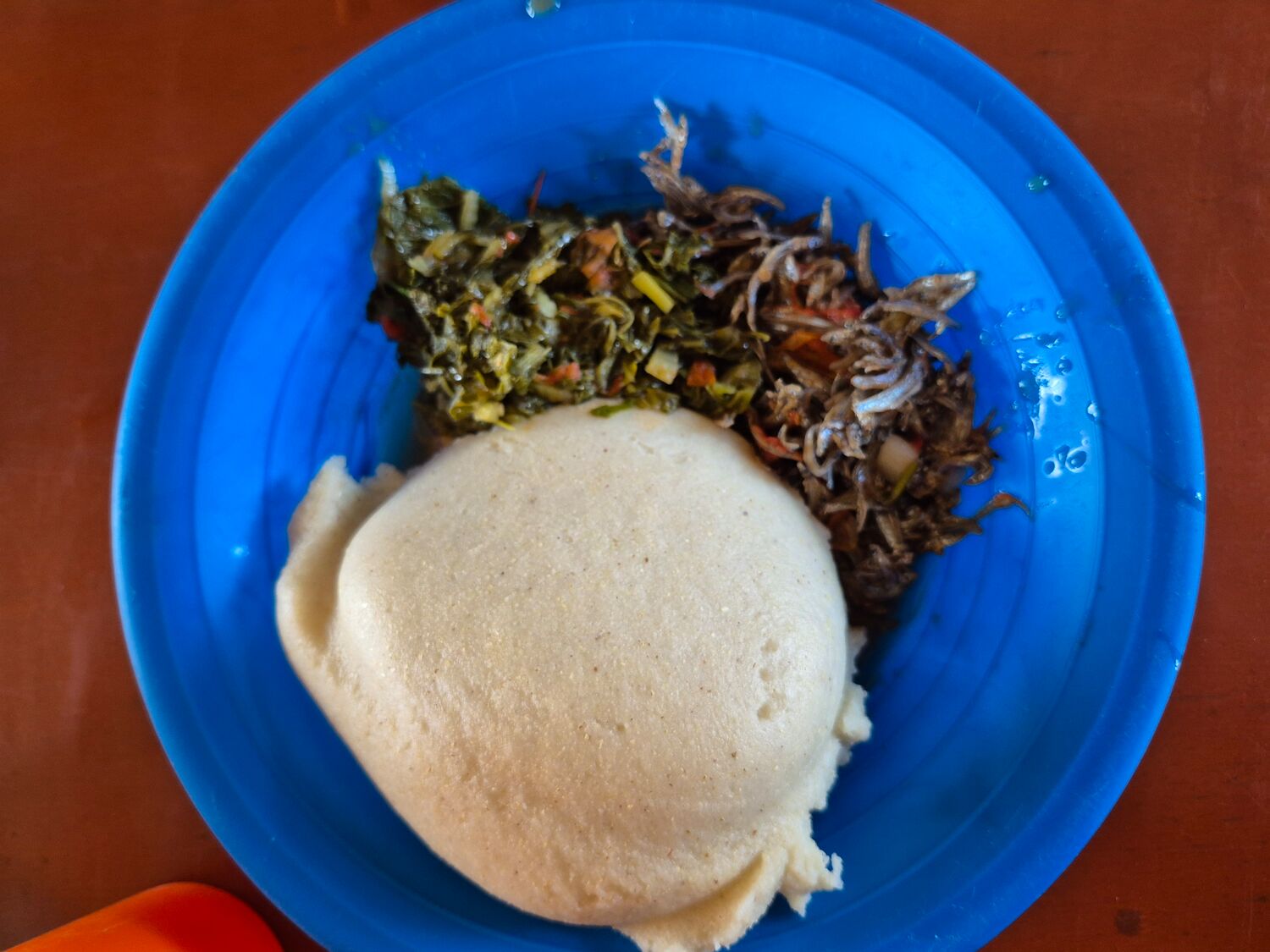 Hier zum Beispiel eine Art Fischeintopf. Nzima hat natürlich unserer Köchin gemacht. Video