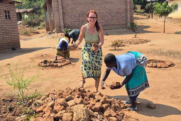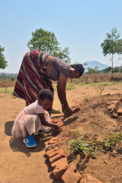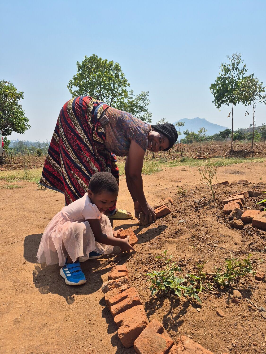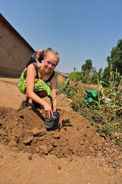 In Malawi bekommt man meistens eher kleine Setzlinge als "Baumpflanzung". Das macht die Anpflanzung sehr mühselig. Die Minisetzlinge sind ruck zuck abgefressen oder auch übergetrampelt. Darum muss direkt eine Makierung mit Steinen erfolgen.